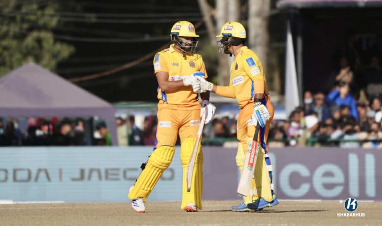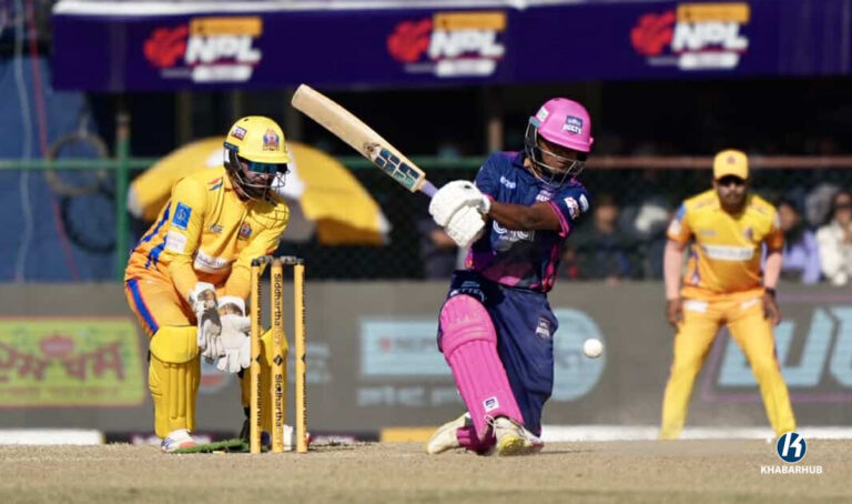 काठमाडौं– नेपाल प्रिमियर लिग (एनपीएल)को पहिलो क्वालिफ्याएर खेलमा सुदूरपश्चिम रोयल्सविरुद्ध ब्याटिङ गरिरहेको जनकपुर बोल्ट्स सुरुवातमै