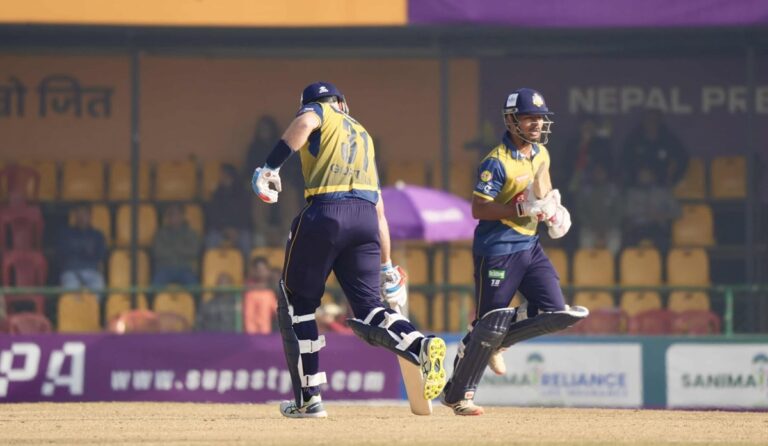 काठमाडौं – नेपाल प्रिमियर लिग (एनपीएल) अन्तर्गत आइतबारको पहिलो खेलमा विराटनगरले पावरप्लेमा दुई विकेट गुमाएको