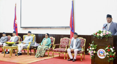 काठमाडौं - एसिसी यू-१९ एसिया कप क्रिकेटमा अफगानिस्तानसँग खेलिरहेको नेपालको तेस्रो विकेट गएको छ । २ सय ६२ रनको लक्ष्य पछ्याएको नेपालका कतान देव खनाल २४ रनमा आउट भएका हुन् । यसअघि पहिलो विकेटको रुपमा विपिन रावल शून्य रनमा आउट हुँदा दिपक बोहरा १५ रनमा पभेलिएन फर्केका थिए । अहिले अर्जुन कुमाल २२ रन बनाएर…