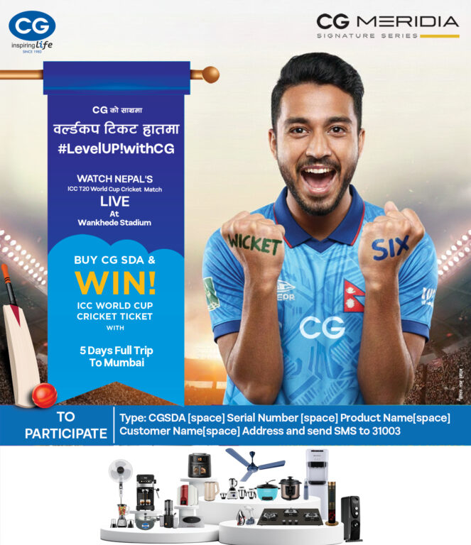 काठमाडौं– सिजी ब्राण्डले आफ्ना साना घरायसी उपकरणहरूका लागि ‘सिजीको साथमा, वर्ल्डकप टिकट हातमा’ ‘#लेभलअप!उइथसीजी’ भन्ने नाराका साथ