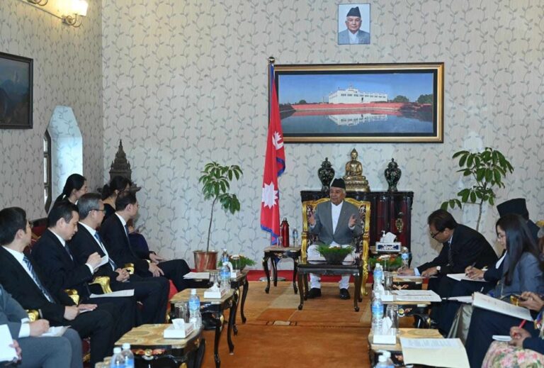 काठमाडौं– नेपाल भ्रमणमा रहेका चिनियाँ उपविदेशमन्त्री सुन वेइतोङले राष्ट्रपति रामचन्द्र पौडेलसँग शिष्टाचार भेट गरेका छन्