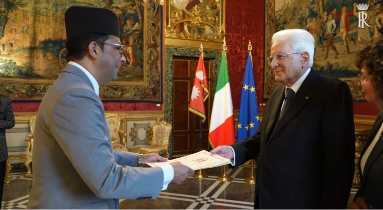 काठमाडौं– इटालीका लागि नेपालका गैरआवासीय राजदूत रामप्रसाद सुवेदीले त्यहाँका राष्ट्रपति सेर्गियो माटारेलासमक्ष आफ्नो ओहोदाको प्रमाणपत्र