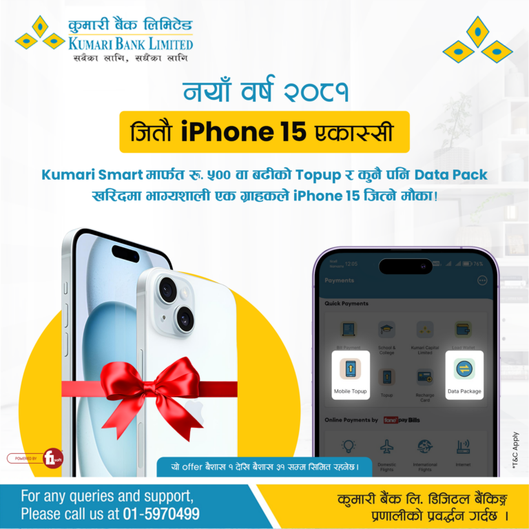 काठमाडौं– कुमारी बैंकले डिजिटल बैंकिङ अनुभवको अभिवृद्धि गर्नका लागि एफवान सफ्ट इन्टरनेशनलसँगको सहकार्यमा नयाँ अभियान