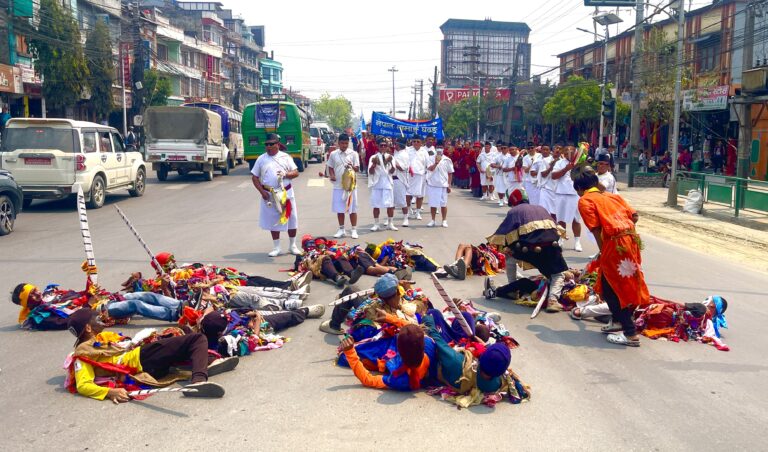कास्की । चर्खादेखि खर्क अनि भेडीगोठको झल्को । गुरुङ वेशभूषामा सजिएकाको उस्तै जमघट । राक्षससँगै