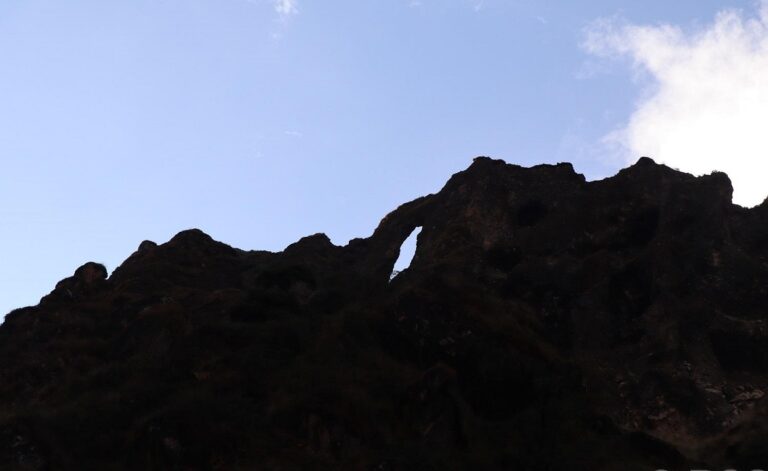 म्याग्दी– सुख्खा पहाडको टुप्पोमा टाढैदेखि देखिने गोलो आकारको प्वाल । झट्ट हेर्दा मानव निर्मित प्रवेशद्वार