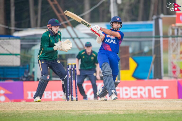 काठमाडौं – आयरल्यान्ड ‘ए’सँग दुई टी–२० अभ्यास खेलअन्तर्गत दोस्रो खेल खेलिरहेको नेपालले चौथो विकेटको रुपमा