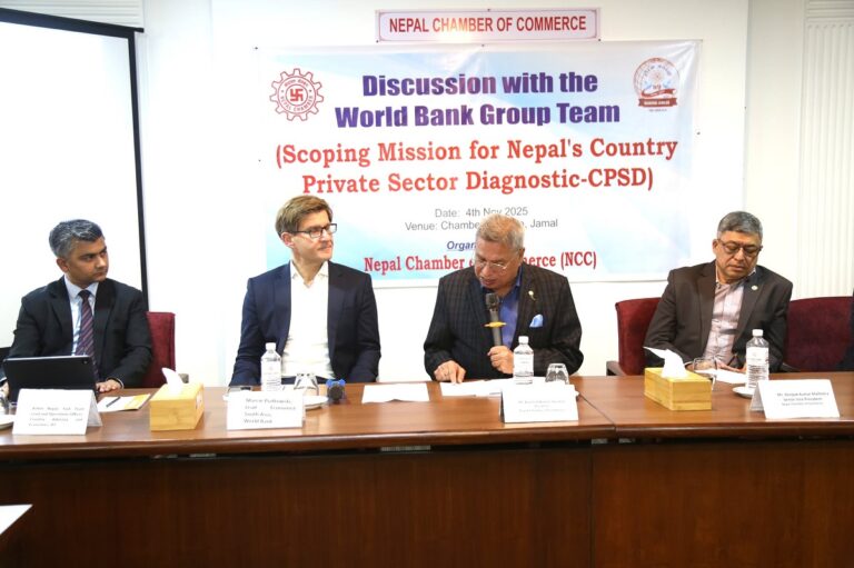 काठमाडौं– नेपाल चेम्बर अफ कमर्स र विश्व बैंक समूहबीच नेपालको निजी क्षेत्रको अवस्था, लगानीका अवसर