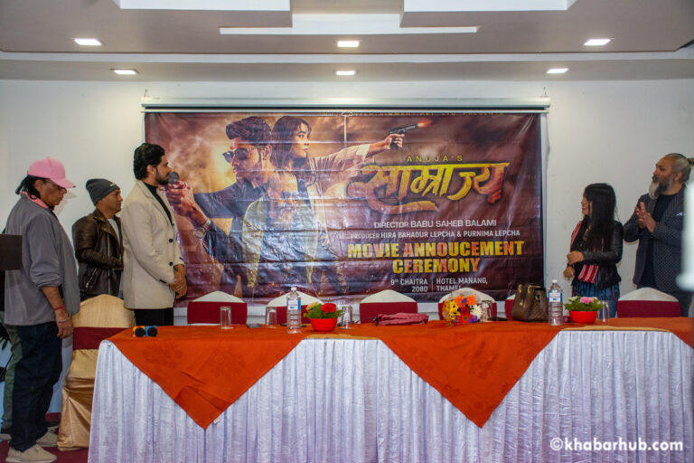 काठमाडौं– चलचित्र ‘साम्राज्य’ निर्माणको घोषणा गरिएको छ । निर्माण पक्षले शुक्रबार ठमेलमा पत्रकार सम्मेलन गरी