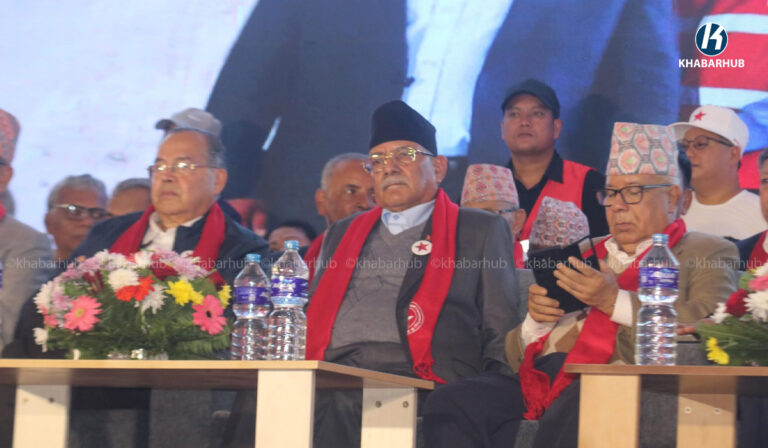 काठमाडौं- नेकपा माओवादी केन्द्रसहित नौ दल मिलेर बनेको नेपाली कम्युनिस्ट पार्टी घोषणा कार्यक्रममा नेकपा एकीकृत