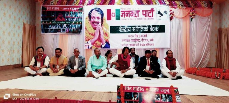 पर्सा– जनमत पार्टीको केन्द्रीय समिति बैठक वीरगञ्जमा सुरु भएको छ। आजदेखि सुरु भएको बैठक भोलिसम्म