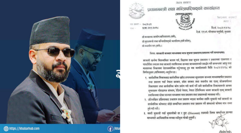 काठमाडौँ – सरकारले सबै प्रकारका सरकारी सूचना तथा विज्ञापन अनिवार्य रूपमा सरकारी स्वामित्वका सञ्चार माध्यममा
