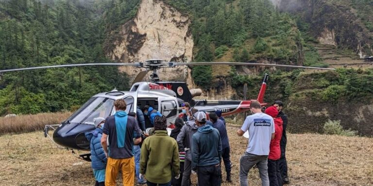गोरखा– मनास्लु क्षेत्र भ्रमणका क्रममा भीरबाट खसेको ढुङ्गा लागेर गम्भीर घाइते भएका पर्यटकको आज हेलीद्वारा उद्धार