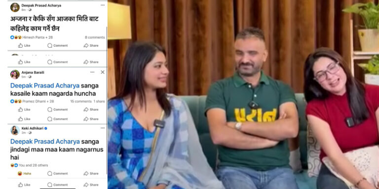 काठमाडौं – फिल्म ‘परान’का निर्देशक दीपक आचार्य ‘काकु’, नायिका केकी अधिकारी र अञ्जना बराइलीको नियोजित