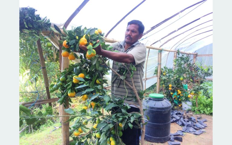 गलकोट– सिगानामा दसैँ अगावै फलेका बेमौसमी सुन्तला टोपबहादुर खड्काले प्रतिकेजी एक सयका दरले बिक्री गरे