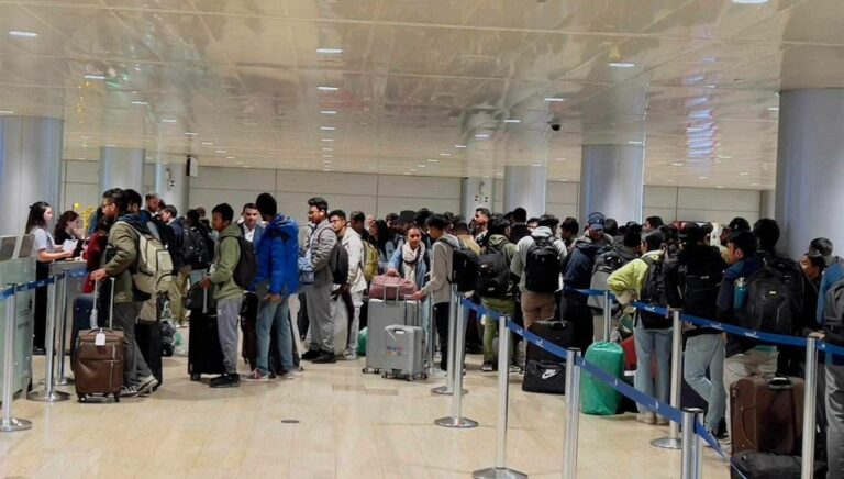 काठमाडौँ– इजरायलबाट नेपाल फर्किन लागेका नेपालीहरू नेपाल एयरलाइन्सको जहाज चढ्न त्यहाँस्थित तेलअबिब विमानस्थलमा भेला भएका छन्। द्वन्द्वग्रस्त