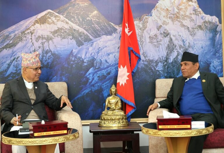काठमाडौं– राष्ट्रियसभाका अध्यक्ष नारायणप्रसाद दाहालसँग अर्थमन्त्री रामेश्वरप्रसाद खनाल र कानुन, न्याय तथा संसदीय मामिलामन्त्री अनिलकुमार