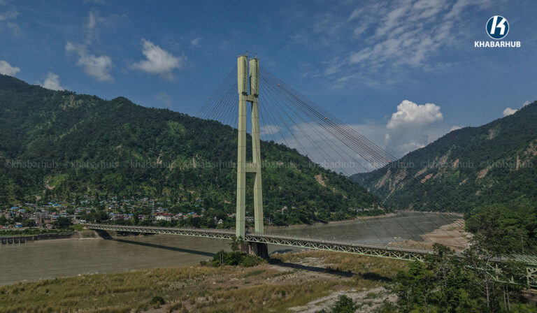 कर्णाली– एउटा मात्रै पिल्लरबाट बनेको केबुल तारयुक्त पाँच सय मिटर लम्बाइ भएको नमूना पुल भएका