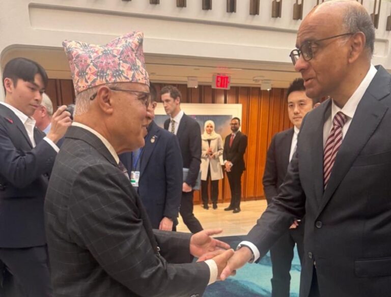 वासिङ्टन डिसी– अर्थमन्त्री रामेश्वरप्रसाद खनालले सिङ्गापुरका राष्ट्रपति थरमन शानमुगार्थमसँग भेटवार्ता गरेका छन् । विश्व बैंक