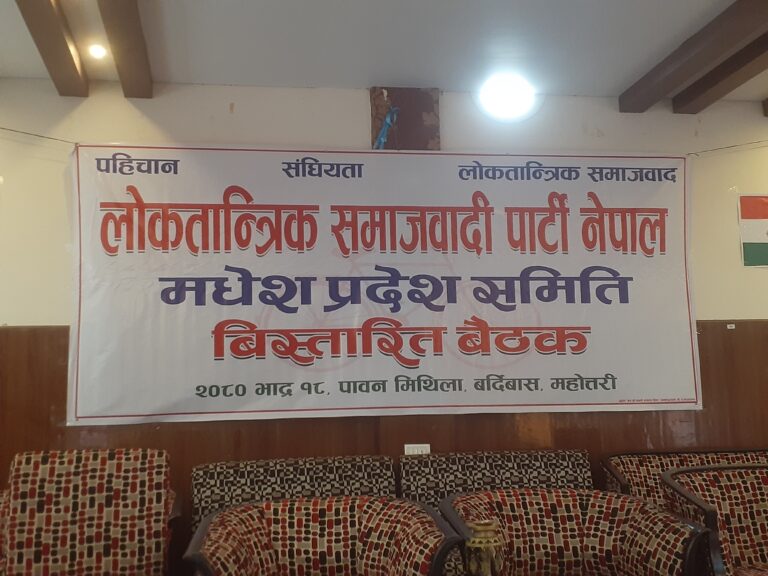 महोत्तरी– लोकतान्त्रिक समाजवादी पार्टी मधेश प्रदेशको विस्तारित बैठक बर्दिबासमा बसिरहेको छ । बिस्तारित बैठकले मुख्यतः