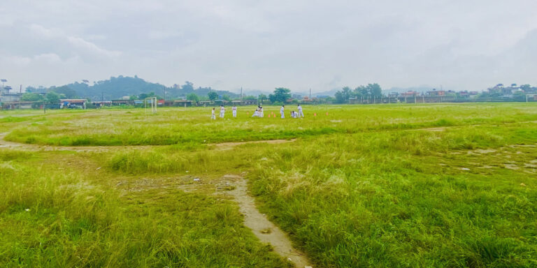 पोखरा- सिमसिम पानी परिरहेको थियो । लेखनाथ रङ्गशालाको छेउपट्टि मङ्गलबार बिहान बालबालिका कराँते सिकिरहेका थिए ।