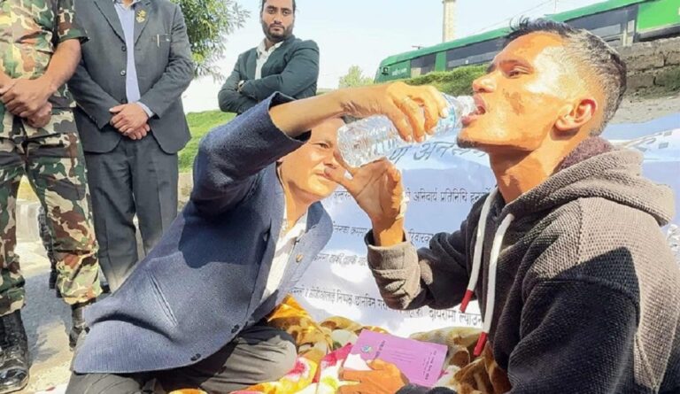 काठमाडौं– गृहमन्त्री ओमप्रकाश अर्यालले सरकारमा सुदूरपश्चिमको प्रतिनिधित्व हुनुपर्ने लगायतका माग राख्दै आमरण अनशन बस्दै आएका