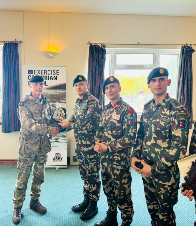 काठमाडौं– नेपाली सेनाले बेलायतमा सम्पन्न अन्तर्राष्ट्रिय सैनिक अभ्यास ‘एक्ससाइज क्यामब्रियान पट्रोल २०२५’ मा स्वर्ण पदक