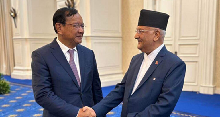 काठमाडौं– नेकपा एमाले अध्यक्ष केपी शर्मा ओलीले कम्बोडियाका प्रधानमन्त्री हुने सेनसँग भेटवार्ता गरेका छन्। कम्बोडिया