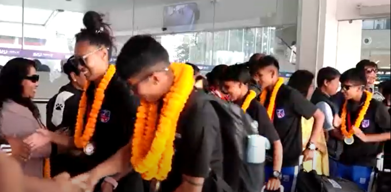 काठमाडौँ– बंगलादेशमा मैत्रीपूर्ण सिरिजको उपाधि जितेको राष्ट्रिय महिला फुटबल टिम स्वदेश फर्किएको छ । सोमबार
