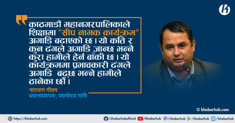 काठमाडौं महानगरपालिकाले भर्खरै सुरु गरेको ‘शिक्षामा सीप’ नामक कार्यक्रम अहिले ‘इनिसियल फेज’मा नै छ। यो