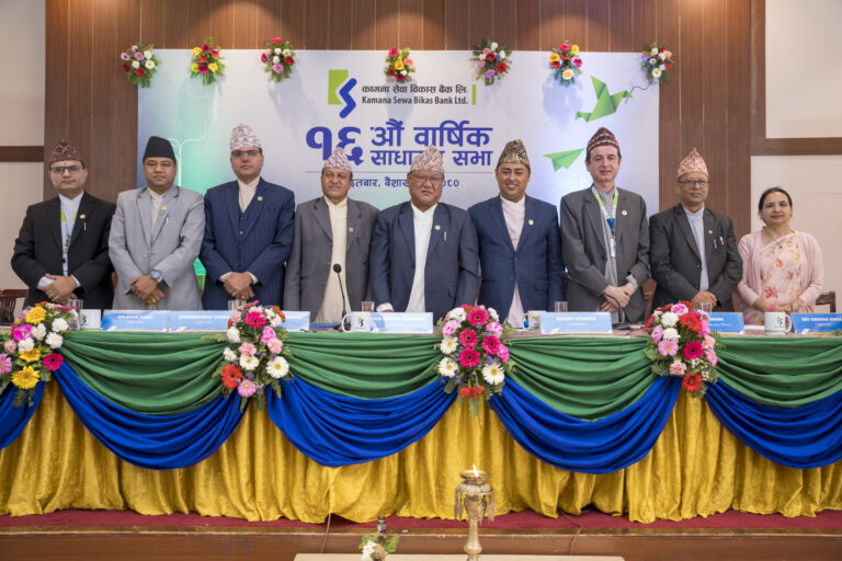 काठमाडौँ– कामना सेवा विकास बैंक लिमिटेडको १६औं वार्षिक साधारणसभा आइतबार सम्पन्न भएको छ । साधारण