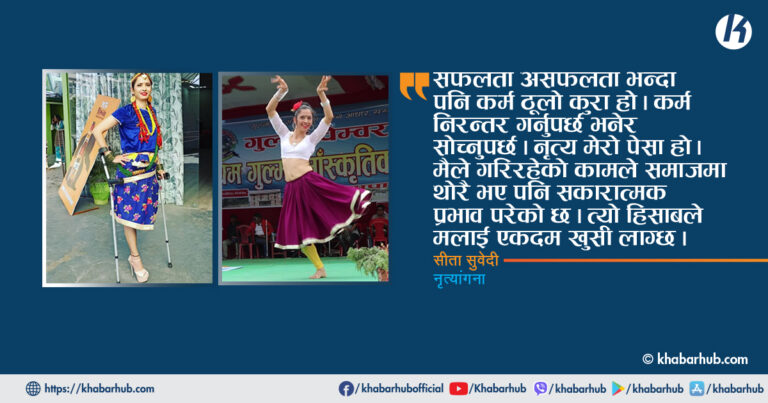 सीता सुवेदी जो आफ्नो फरक क्षमताका बाबजुद नेपाली नृत्यकलामा अद्भुत कला प्रस्तुत गर्ने प्रतिभा हुन्।