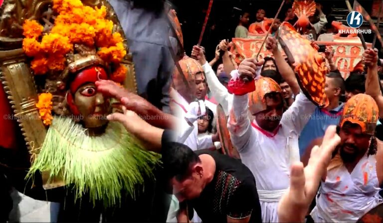 काठमाडौं– असोज शुक्ल पक्षको एकादशीका अवसरमा शुक्रबार भक्तपुरको मध्यपुरथिमिमा मल्लकालीन युद्धको झल्को दिने खाँ पिहाँवइगु