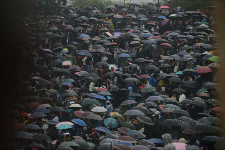 अझै रोकिएन वर्षा, छाता ओढेर दर्शक खेल हेर्न कुर्दै (फोटो फिचर)