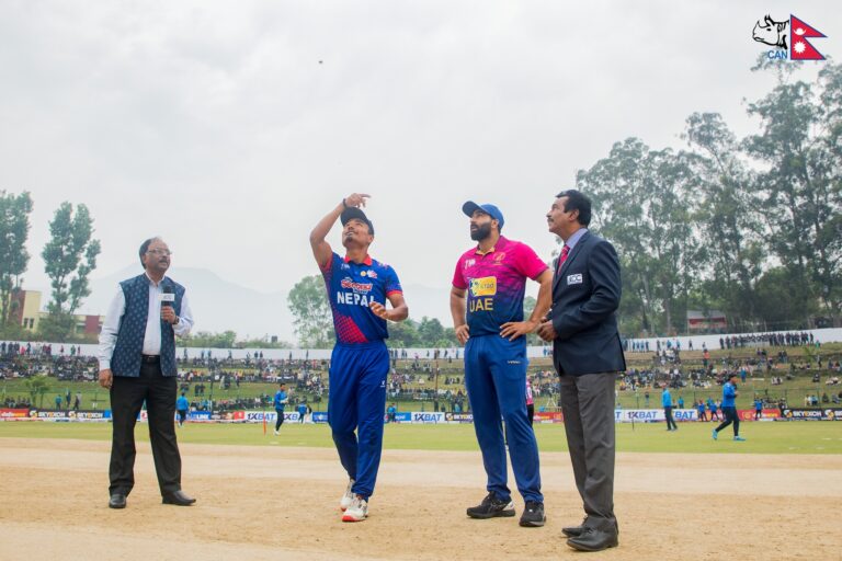 काठमाडौँ- एसीसी प्रिमियर लिगको फाइनल खेलमा यूएईविरुद्ध नेपालले टस जितेर पहिला बलिङ रोजेको छ ।