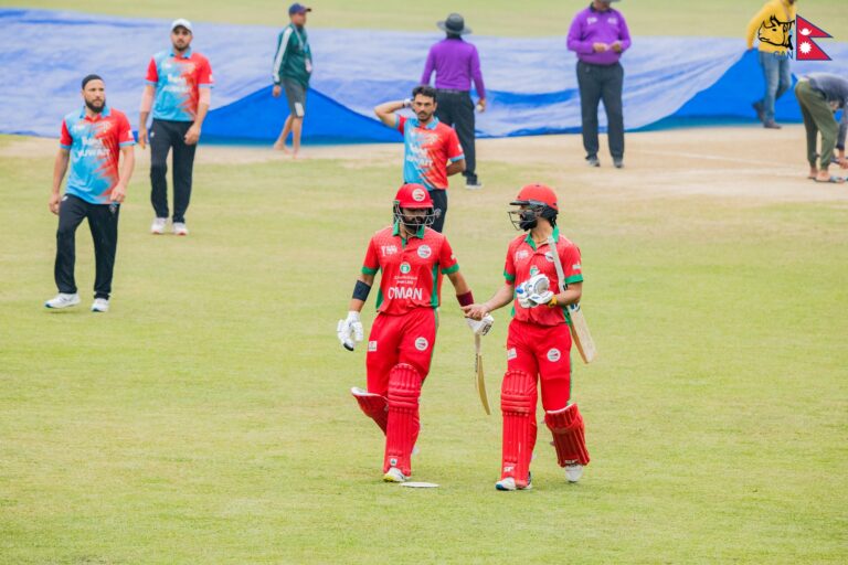 काठमाडौँ – काठमाडौँमा जारी एसीसी प्रिमियर कप क्रिकेट प्रतियोगिताको तेस्रो स्थानको लागि भइरहेको ओमान र