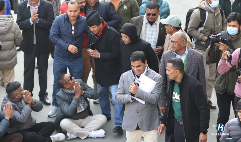 काठमाडौं- नेपाली कांग्रेसको शेरबहादुर देउवा पक्षका नेता-कार्यकर्ता निर्वाचन आयोग अगाडि नाराबाजीमा उत्रिएका छन्। दुवै पक्षका
