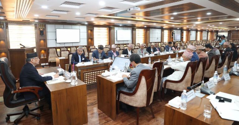काठमाडौं– दिगो विकास लक्ष्य केन्द्रीय निर्देशक समितिको बैठक बसिरहेको छ । प्रधानमन्त्री तथा मन्त्रिपरिषद्को कार्यालयमा