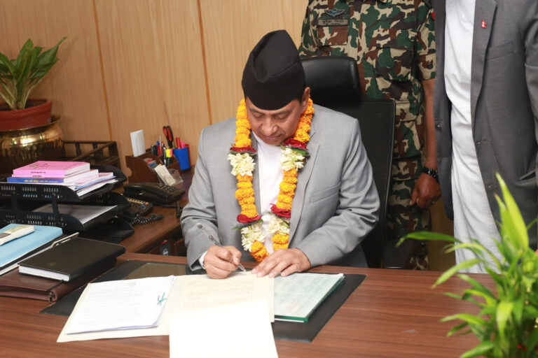 काठमाडौँ- नवनियुक्त उपप्रधान एवम् गृहमन्त्री नारायणकाजी श्रेष्ठले शुक्रबार पद बहाली गरेका छन् । सिंहदरबारस्थित मन्त्रालयमा