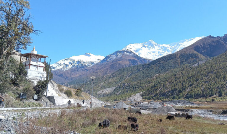 मनाङ- हिमाली जिल्ला मनाङको मनाङ ङिस्याङ गाउँपालिका–५ आइसलेक खर्कमा अहिले याक, चौँरी र भेडाच्याङ्ग्रा घाँसेमैदानमा