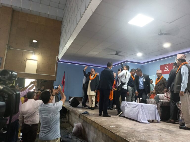 काठमाडौं– एमाले र राप्रपाले झापा–१ को धुलाबारीमा आयोजना गरेको संयुक्त कार्यकर्ता भेलामा एमाले अध्यक्ष केपी