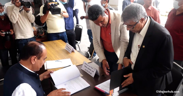 काठमाडौँ- नेकपा एमालेले प्रदेश र संघीय निर्वाचनका लागि निर्वाचन आयोगमा दल दर्ता गरेको छ ।