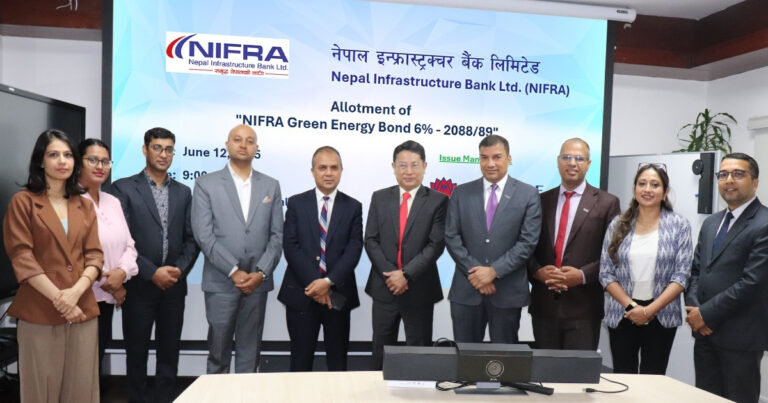 काठमाडौँ – नेपाल इन्फ्रास्ट्रक्चर बैंक लिमिटेड (निफ्रा) ले निष्काशन गरेको ‘निफ्रा ग्रीन इनर्जी बोन्ड ६%