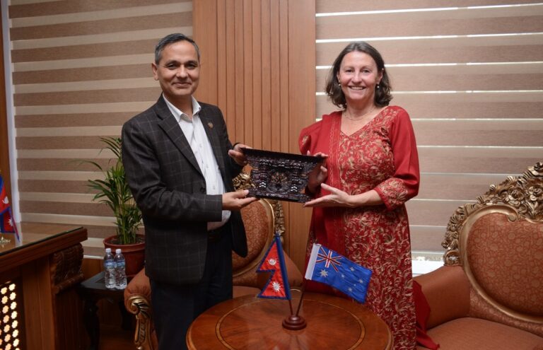 काठमाडौं– नेपालका लागि अस्ट्रेलियाली राजदूत लियान जोन्स्टनले बुधबार गृहमन्त्री ओमप्रकाश अर्यालसँग बिदाइ भेट गरेकी छन्