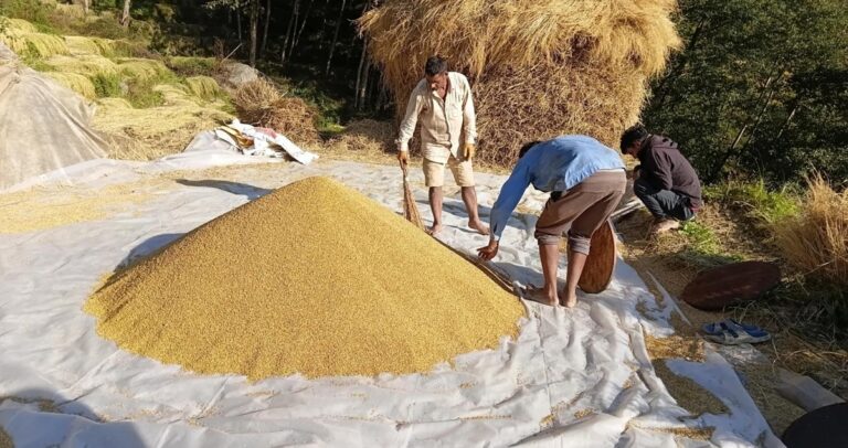 भोजपुर– यहाँका किसान यतिबेला धान थन्क्याउनमा व्यस्त छन् । दशैं–तिहार सकिएसँगै खेतमा पाकेका धान भित्र्याउने