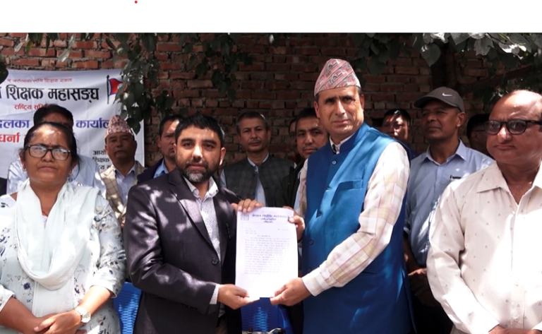 काठमाडौं– विद्यालय शिक्षा विधेयकप्रति असन्तुष्टि जनाउँदै आन्दोलनरत नेपाल शिक्षक महासंघले राष्ट्रिय स्वतन्त्र पार्टी(रास्वपा) को कार्यालयमा