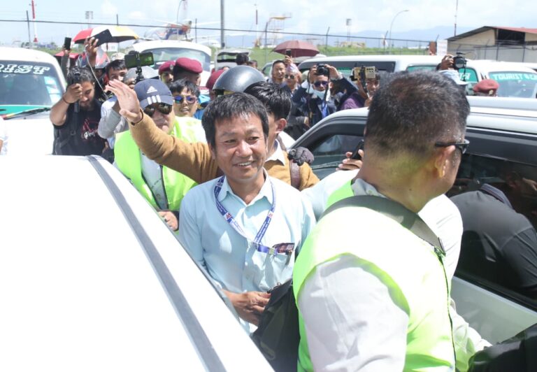 काठमाडौं– धरान उपमहानगरपालिकाका मेयर हर्क साम्पाङ काठमाडौं आउँदा उनका समर्थकहरूले विमानस्थलमा मोटरसाइकल र्याली गरेर स्वागत