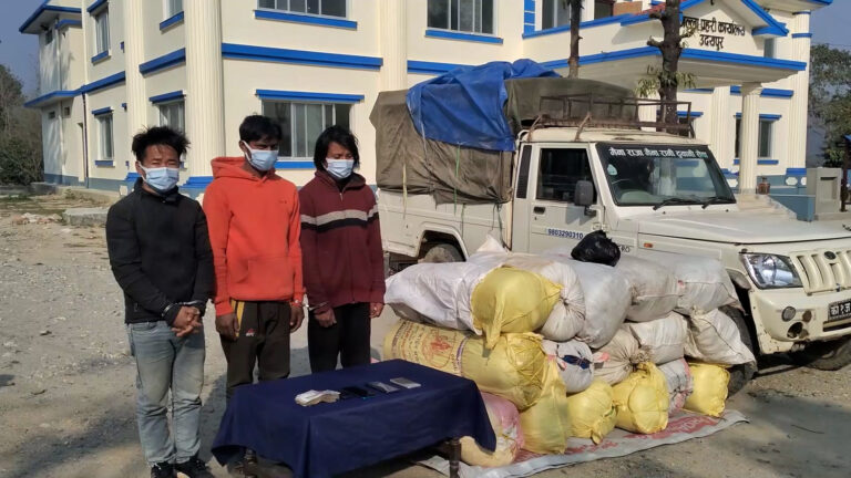 उदयपुर– उदयपुर प्रहरीले बेलका नगरपालिका ८ सिरुवानीबाट ठूलो परिमाणको गाँजासहित ३ जनालाई पक्राउ गरेको छ