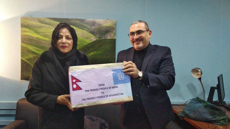 काठमाडौं– नेपालले अफगानिस्तानलाई मानवीय सहायता सामग्री हस्तान्तरण गरेको छ । आज (आइतवार) परराष्ट्र मन्त्रालयकी प्रवक्ता