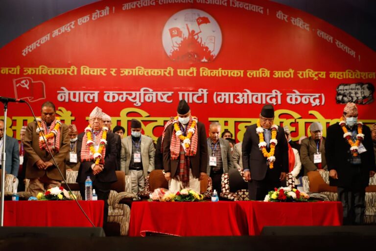 काठमाडौँ– नेकपा माओवादी केन्द्रको आठौँ राष्ट्रिय महाधिवेशन अहिले काठमाडौँको कमलादीस्थित प्रज्ञा भवनमा उद्घाटन समारोह अन्तिम