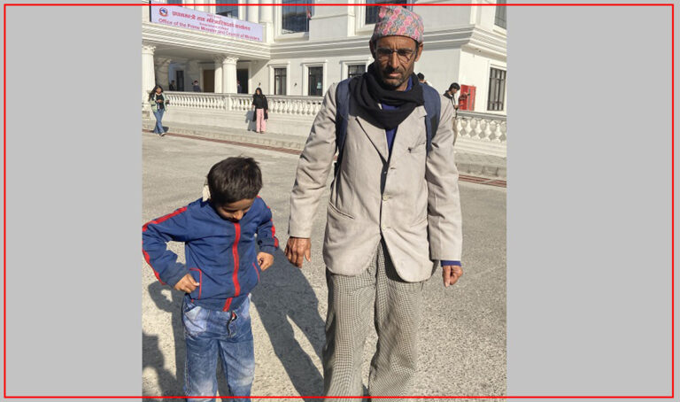 काठमाडौँ- एक हातमा कागजपत्र अर्को हातमा नाति। मलिन अनुहारले नै भनिरहेको थियो, उनी कुनै समस्यासँग